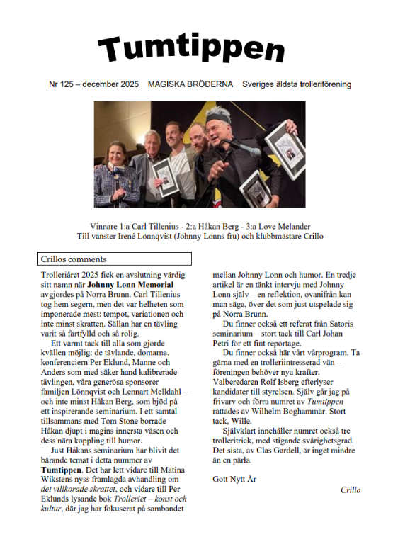 Skynda att betala så du inte missar senaste nummer 120 av Tumtippen som innehåller 35 sidor och många trick.