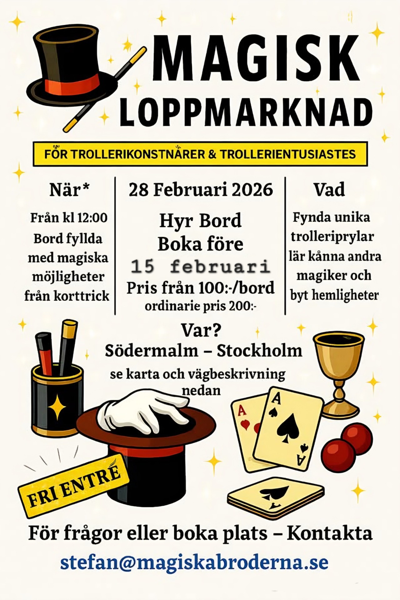 Pris: Bokningar gjorda före 15 februari 100:-/säljplats - Ordinarie pris 200 kr