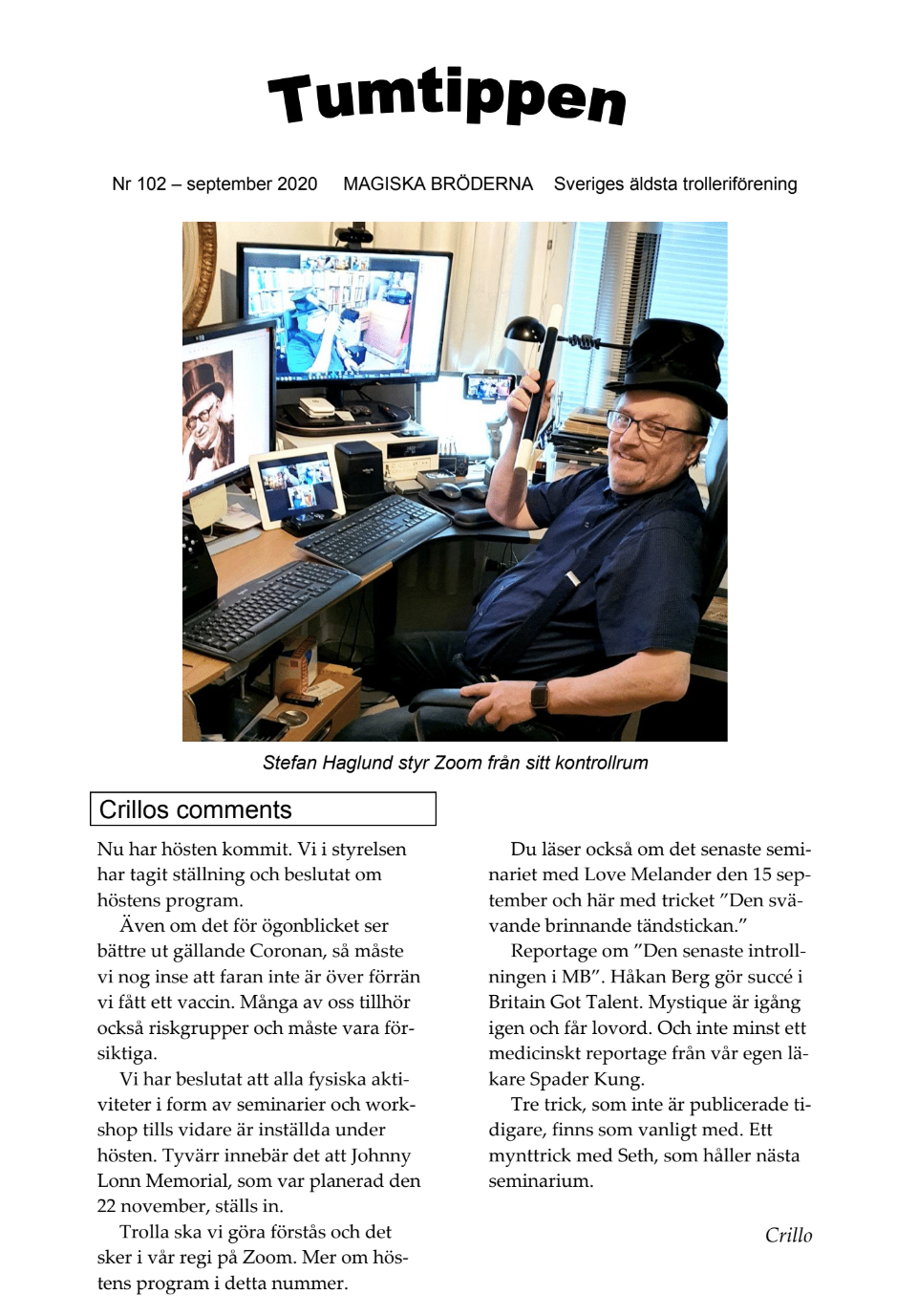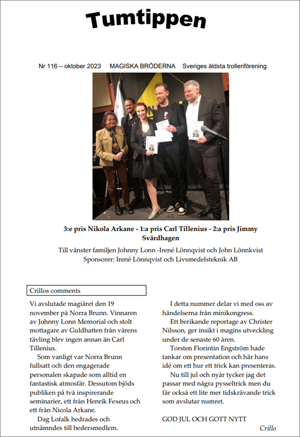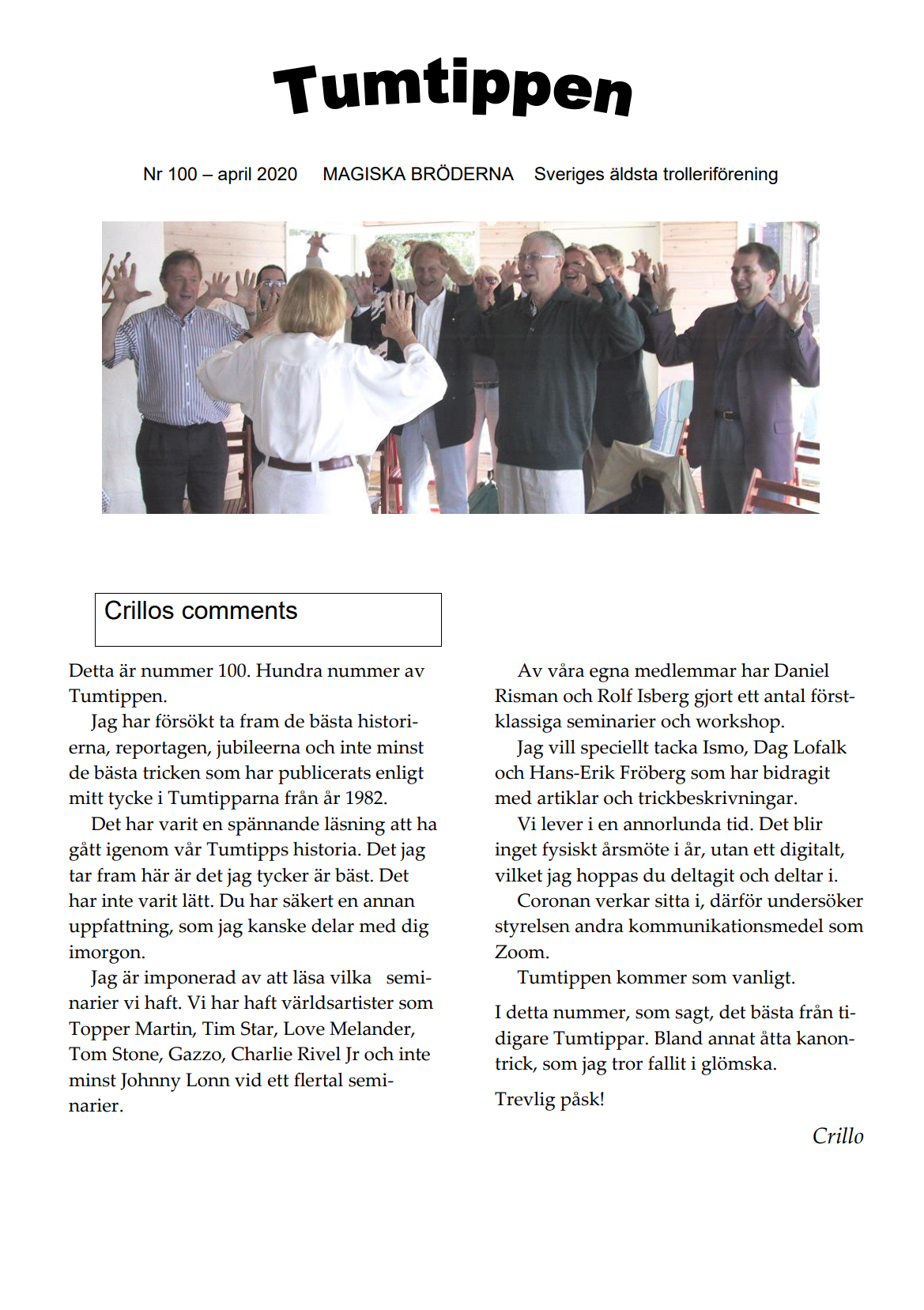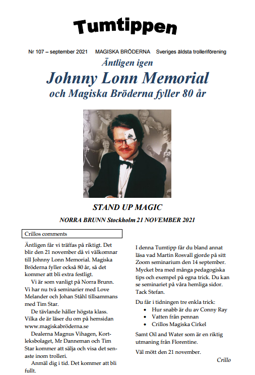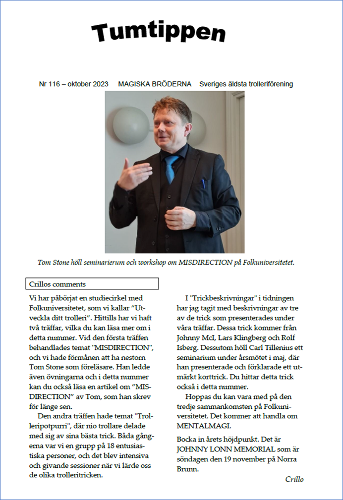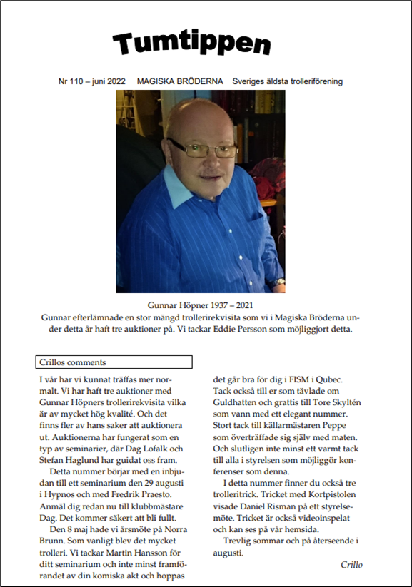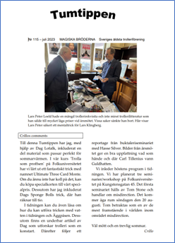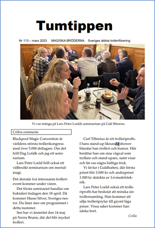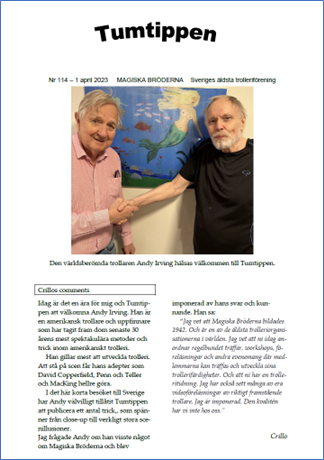 Crillo kommer att berätta om tillkomsten av tidningen Nr 114 på vår nästa träff på södermalm.