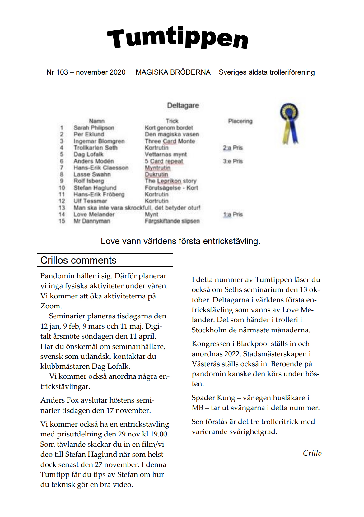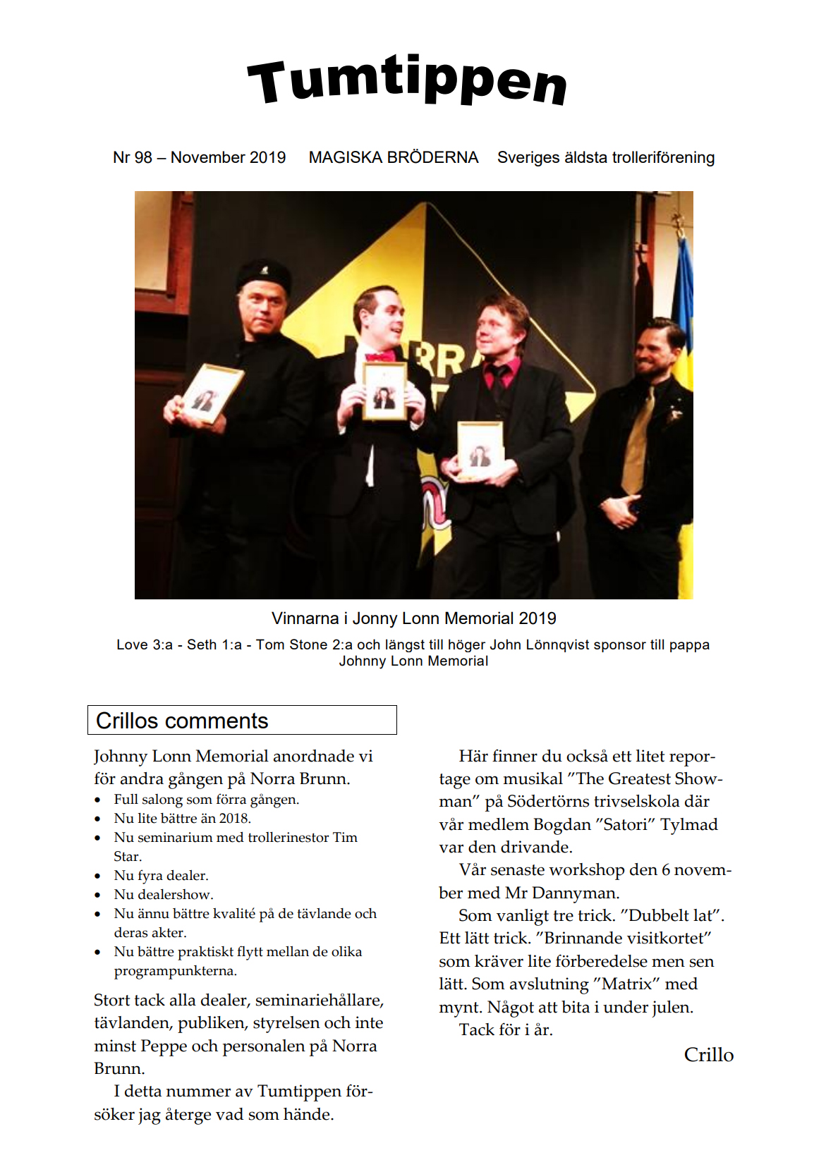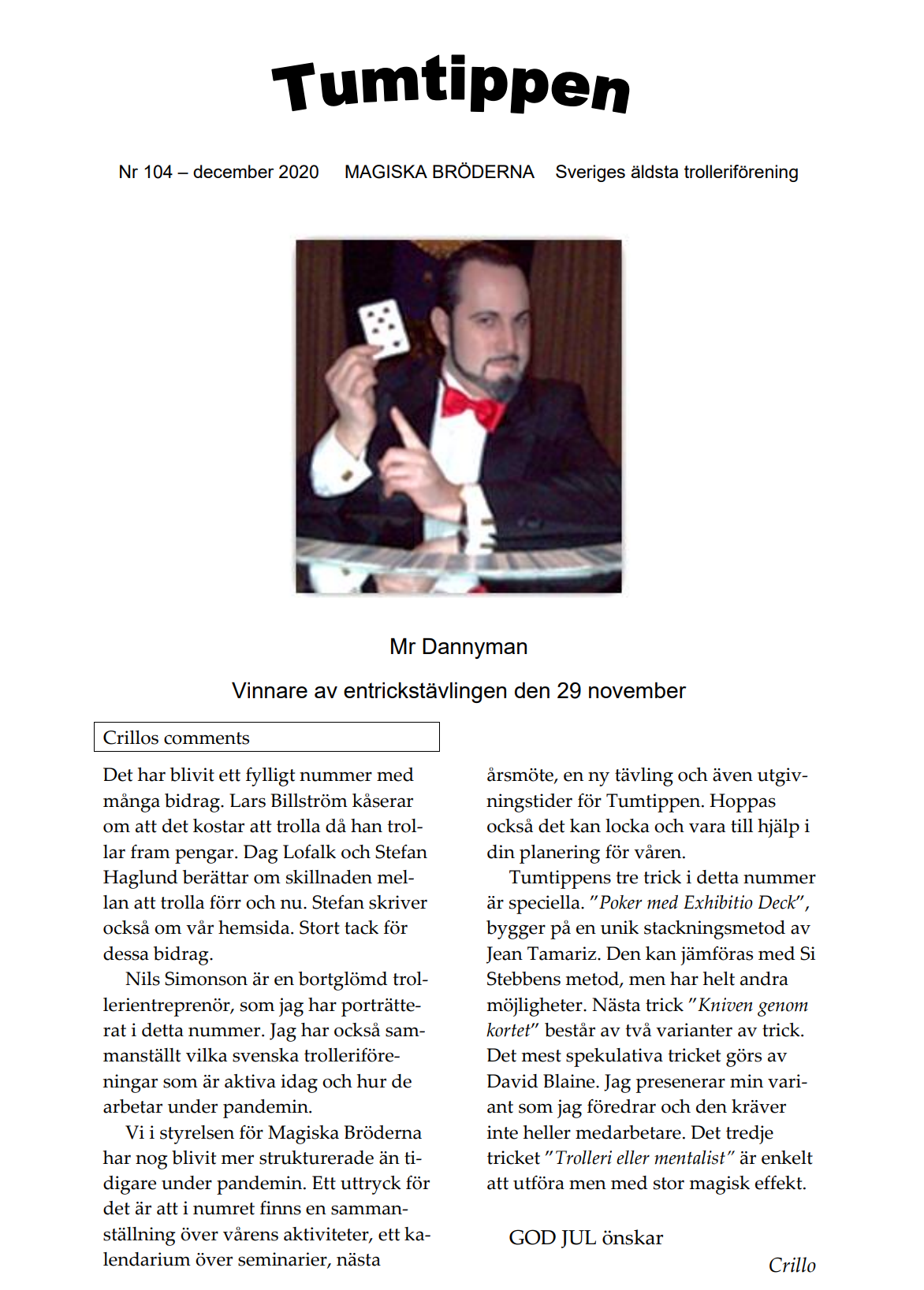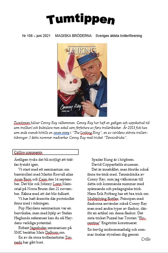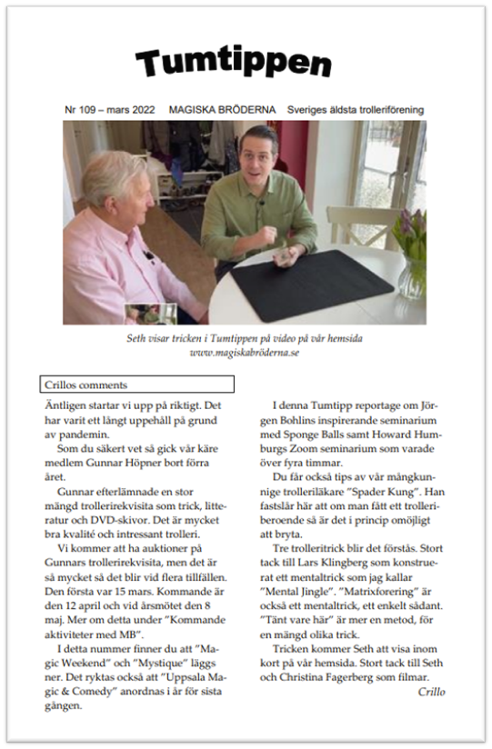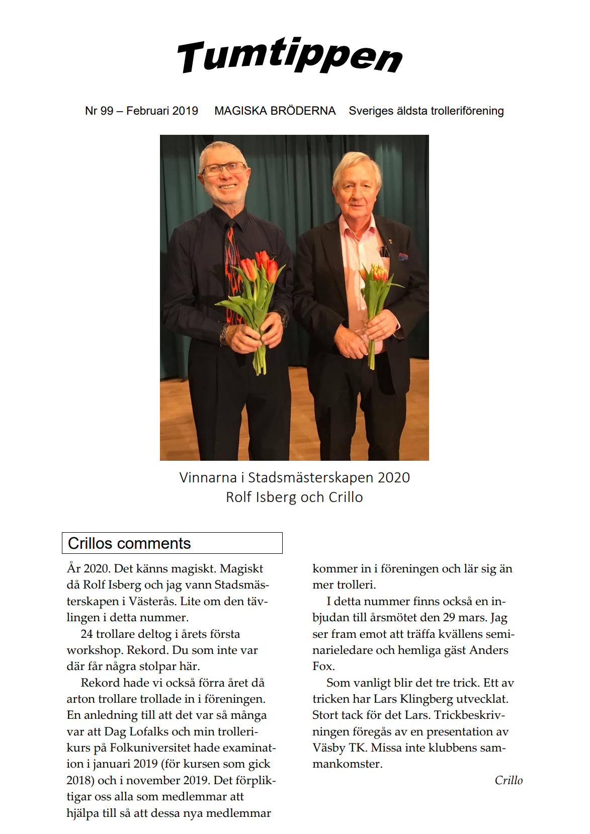 Crillo kommer att berätta om tillkomsten av tidningen Nr 114 på vår nästa träff på södermalm.